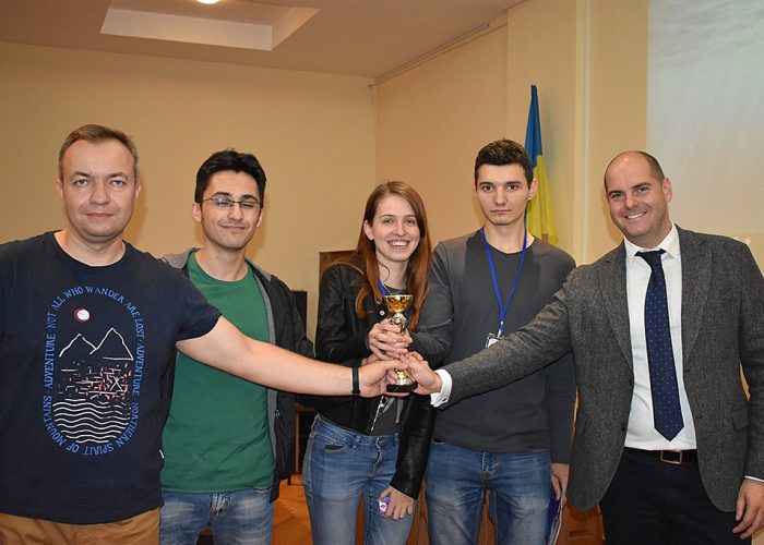 Прикарпатський університет представили студенти 4 курсу спеціальності «Комп’ютерні науки» Любомир Рибак, Микола Ільницький та студентка-магістрант спеціальності «Дизайн» Анжела Урда, керівник команди – доцент кафедри комп’ютерних наук та інформаційних систем, к. т. н. Віталій Горєлов.
