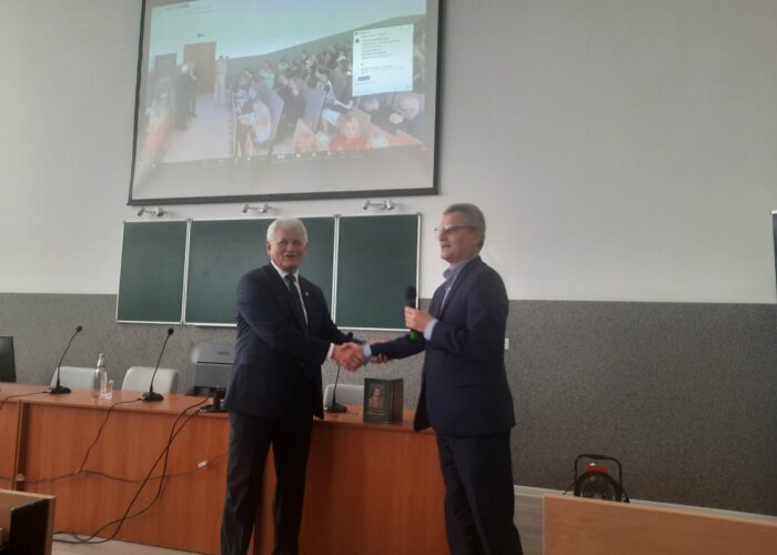 P.S. У подяку за приємну і пізнавальну зустріч лектору презентували збірку творів патрона нашого університету Василя Стефаника та примірники фахового видання університету – наукового журналу «Карпатські математичні публікації». Ті, хто не зміг долучитися до лекції, можуть переглянути її