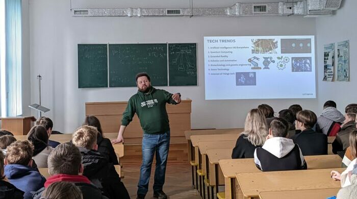 В рамках співпраці університету із стейкхолдерами 21 березня 2024 року відбулася зустріч студентів ОП «Інженерія програмного забезпечення», а також студентів інших спеціальностей факультету математики та інформатики із представником SoftServe – української ІТ компанії що працює у сфері розробки програмного забезпечення та надання консультаційних послуг вже більше 30 років. SoftServe є однією з найбільших компаній-розробників програмного забезпечення у Центральній та Східній Європі та другою найбільшою ІТ-компанією України за кількістю співробітників. Нещодавно наш університет отримав відзнаку «Золотий освітній партнер» від цієї ІТ-компанії.