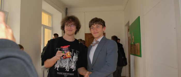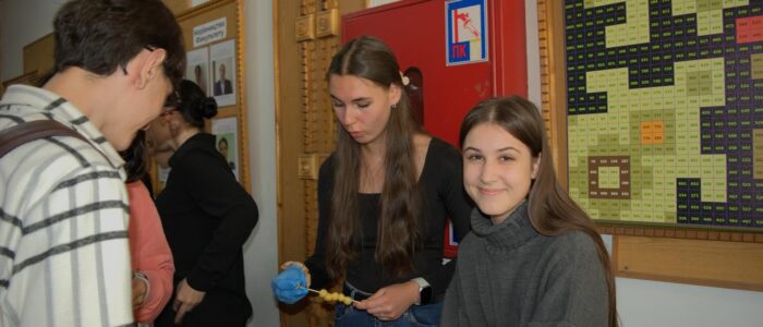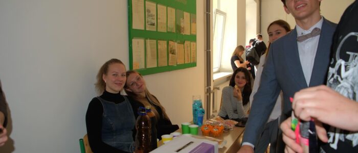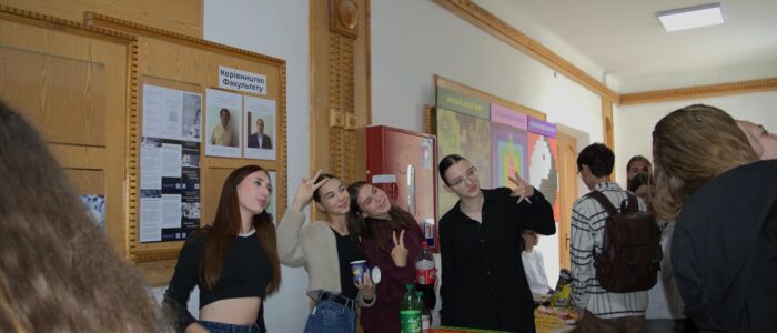 Цього навчального року студенти першого курсу організували яскравий благодійний ярмарок. Ініціаторкою стала голова профбюро студентів Олена Лонюк, а допомагали в організації — заступниця голови профбюро Іванна Бурак та голова Студентського сенату факультету Максим Франків.