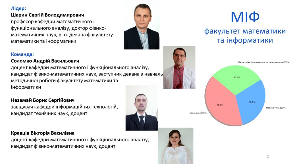 Протягом жовтня-листопада команда факультету математики та інформатики у складі Андрія Соломка, Бориса Незамая і Вікторії Кравців брала участь у серії тренінгів “Університет майбутнього: секрети успішного управління в освіті”. 7 листопада відбулася фінальна зустріч тренінгових сесій, де командою було представлено проєкт Паспорту факультету математики та інформатики.
