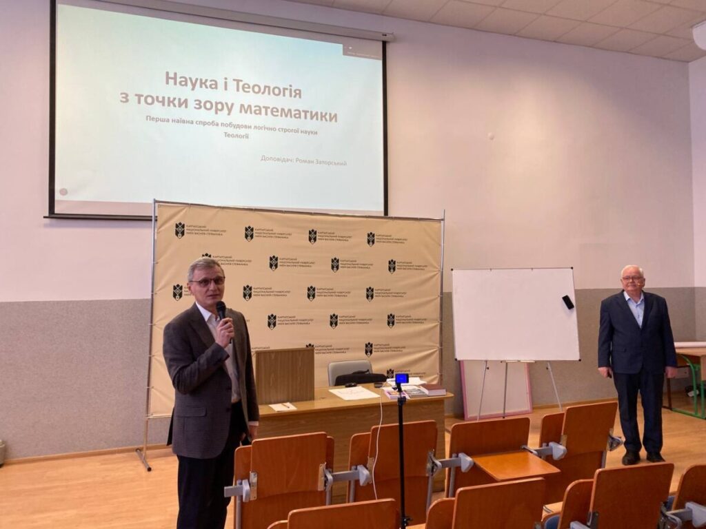 9 березня у стінах Карпатського національного університету імені Василя Стефаника відбулася лекція на тему «Наука і Теологія з точки зору математики», яка зібрала викладачів, студентів та всіх зацікавлених у філософських питаннях науки. Спікером виступив доктор фізико-математичних наук, професор кафедри математики та інформатики і методики навчання Заторський Роман Андрійович. Захід пройшов у форматі публічної лекції з елементами дискусії та викликав жвавий інтерес серед присутніх. Модератором зустрічі виступив декан факультету математики та інформатики Сергій Шарин. З вітальним словом до присутніх звернувся проректор з науково-педагогічної роботи Шкромида Віталій Васильович.