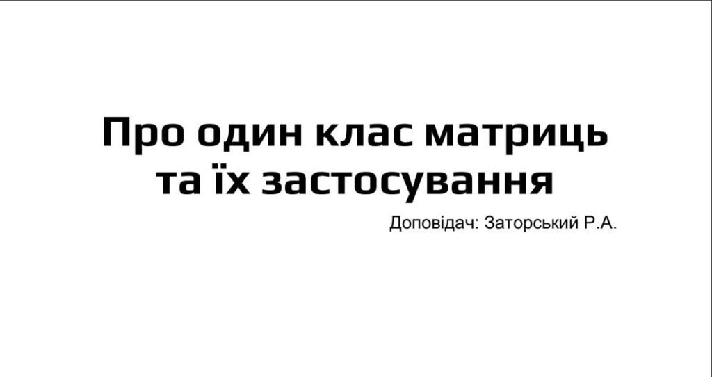 - Проф. Р. А. Заторський представив роботу: «Про один клас матриць та їх застосування».