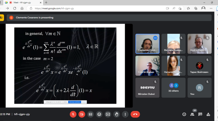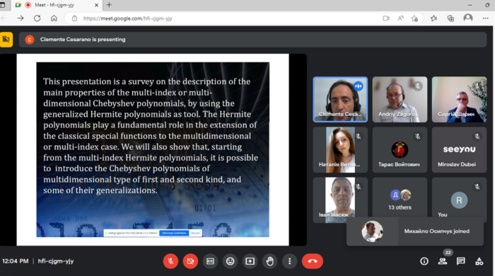 Today, teachers, students and graduate students of our faculty listened to an interesting online lecture in English by Clemente Cesarano from Uninettuno University (Rome, Italy). The lecture was about generalized Hermite polynomials and their application. At the end of the lecture, the lecturer answered a number of questions from the audience.